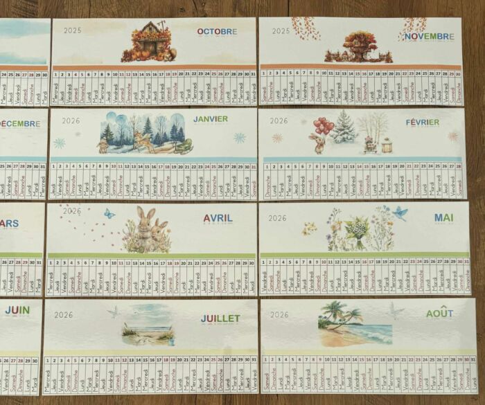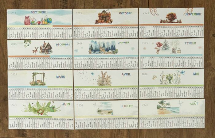La poutre du temps permet à l’enfant d’avoir à sa disposition une année entière en visuel et lui permet de mieux se situer dans le temps ( semaines, mois , saisons , … )
