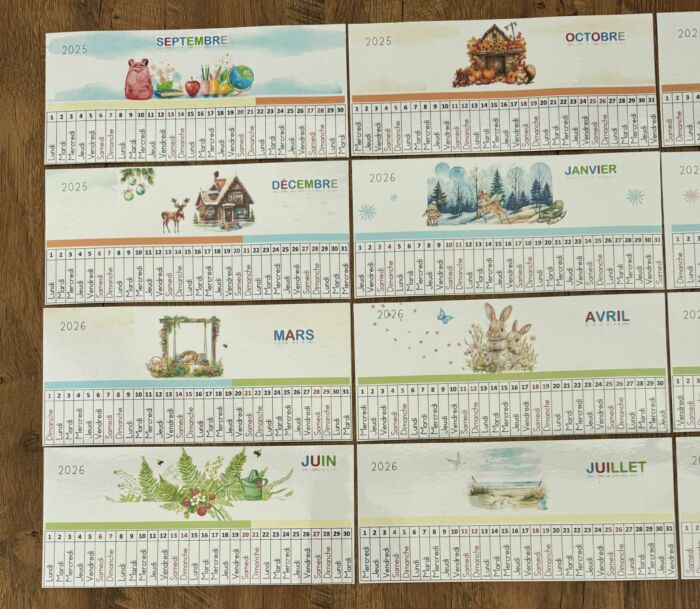 Les week-ends sont affichés en rouge pour que l’enfant puisse aisément se repérer dans la semaine.